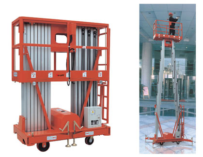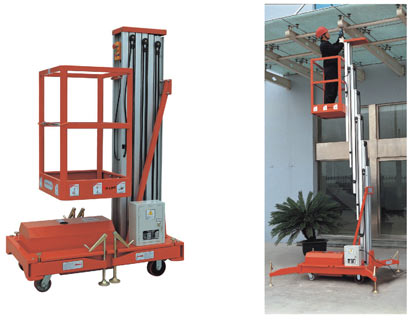 桅柱型高空作業(yè)平臺(tái)使用注意事項(xiàng): ● 用戶指定的操作員需先閱讀隨機(jī)的使用手冊(cè),了解相關(guān)的注意事項(xiàng): ● 使用前檢查各個(gè)緊固件是否松動(dòng),升降機(jī)使用一到二年要更換一次液壓油 ● 帶有支腿的作業(yè)平臺(tái),不允許將支腿松開在升高狀態(tài)下移動(dòng) ● 整機(jī)未調(diào)平調(diào)穩(wěn)不得升降操作,非緊急狀態(tài)地面人員未得到高空作業(yè)人員指令不得操作下控制 ● 由于作業(yè)平臺(tái)升降機(jī)構(gòu)的動(dòng)配合間隙,桅式工作平臺(tái)在升高狀態(tài)有輕微的搖晃現(xiàn)象